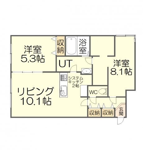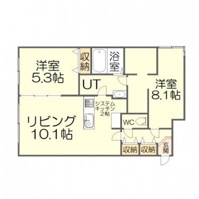 2LDK(53.42m²)└ LD10.1帖 K2帖 洋室8.1帖 洋室5.3帖