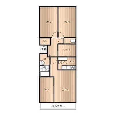 3SLDK(76.7m²)└ LD13.1帖 K2.8帖 洋室6.8帖 洋室6.8帖 洋室4.4帖