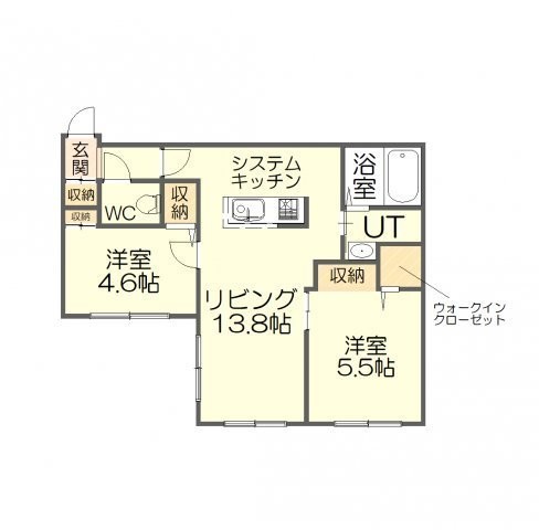 2LDK(50.8m²)└ LDK13.8帖 洋室5.5帖 洋室4.6帖