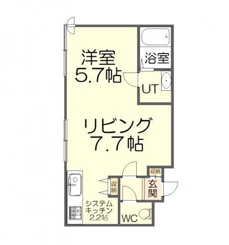 1LDK(32.47m²)└ LD7.7帖 K2.2帖 洋室5.7帖
