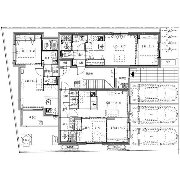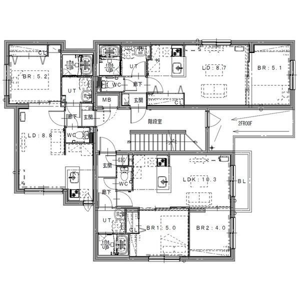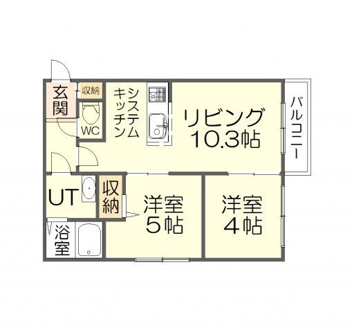 2LDK(42.4m²)└ LDK10.3帖 洋室5帖 洋室4帖