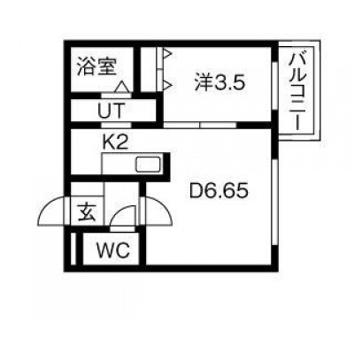1LDK(26.6m²)└ LD6.7帖 K2帖 洋室3.5帖