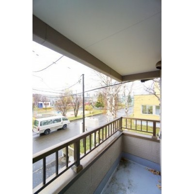 窓を開けたらバルコニーが。洗濯物を干したり、天気の良い日はリ