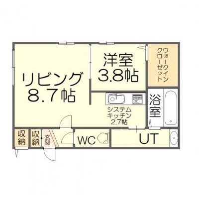 1LDK(33.5m²)└ LD8.7帖 K2.7帖 洋室3.8帖