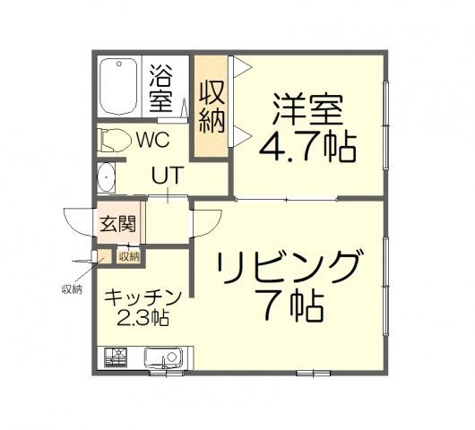 1LDK(32.23m²)└ LD7帖 K2.3帖 洋室4.7帖 洋室4.7帖