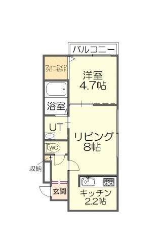 1LDK(34.35m²)└ LD7.6帖 K2.2帖 洋室4.7帖