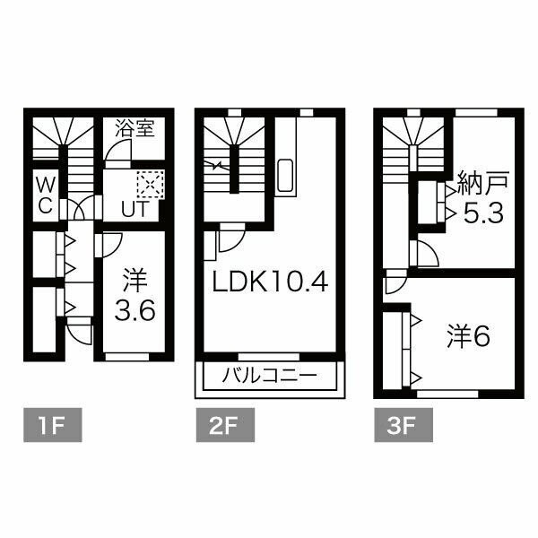 3LDK(79.1m²)└ LDK10.4帖 洋室3.6帖 洋室6.0帖 S(納屋)5.3帖