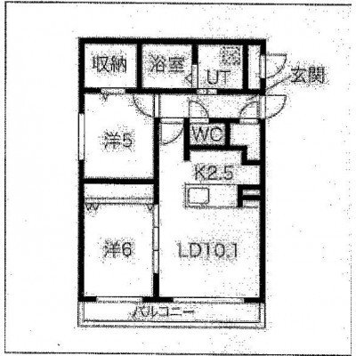 2LDK(54.45m²)└ LD10.1帖 K2.5帖 洋室6帖 洋室5帖