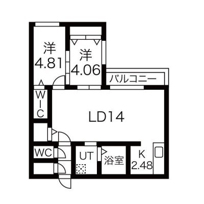 2LDK(56.99m²)└ LD14帖 洋室4.8帖 洋室4帖 K2.4帖