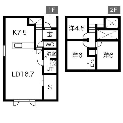 3LDK(95.63m²)└ LD16.7帖 K7.5帖 洋室6.0帖 洋室6.0帖 洋室4.5帖 S(納屋)3.0帖