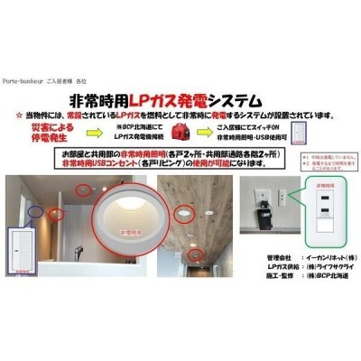 - その他:システムキッチン・ガスキッチン・LPガス・トイレ/バス別・ウォシュレット・洗面化粧台・シャンプードレッサー・公共下水・エアコン・灯油暖房・オートロック・TVインターホン・防犯カメラ・BS・光回線・照明・室内洗濯機置場・バルコニー・トランクルーム・宅配BOX・エ