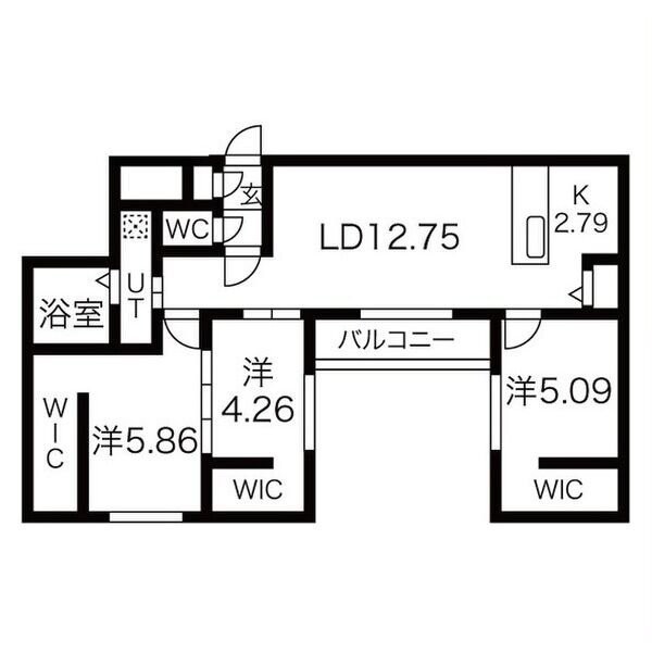 3LDK(70.08m²)└ LDK12.7帖 K2.7帖 洋室5.8帖 洋室5帖 洋室4.2帖