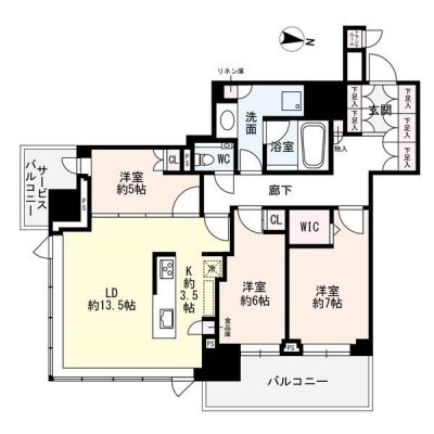 3LDK(87.21m²)└ LD13.5帖 K3.5帖 洋室7帖 洋室6帖 洋室5帖