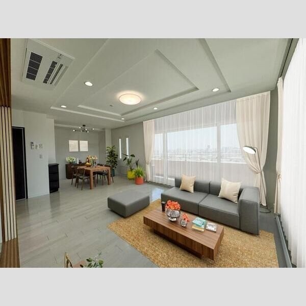 ここに注目!リビングのドアを開けた瞬間、ふわりと感じたのは、室内全体に広がるやわらかな暖かさ。20.4帖のゆとりあるリビングは、東向きと南向きの窓から光がたっぷり差し込む角部屋で、冬の朝でもほんのり明るく、気持ちまでほぐれていくようでした。エアコンだけでなく、床暖房やパネルヒーターが全室に備え付けられていて、寒さの厳しい札幌でも心から安心して暮らせる住まいだと感じました。 キッチンは対面式のカウンターキッチン。ダイニングやリビングと自然につながるこの配置は、料理をしながらでも家族やペットの様子を感じられるのがうれしいポイント。IHクッキングヒーターなので掃除もしやすく、安全性の面でも安心感がありました。背面には十分なスペースがあり、大型の冷蔵庫や家電もすっきり配置できそうです。料理が好きな方にとっては、動線の良さや設備の整い具合が毎日の気持ちをぐっと上げてくれるはず。 洋室は14.1帖、6帖、6帖と広さがしっかり確保されており、和室も含めて4部屋ある間取りは、家族構成やライフスタイルにあわせて柔軟に使えそうでした。ウォークインクローゼットやトランクルームもあり、整理しやすく感じました。