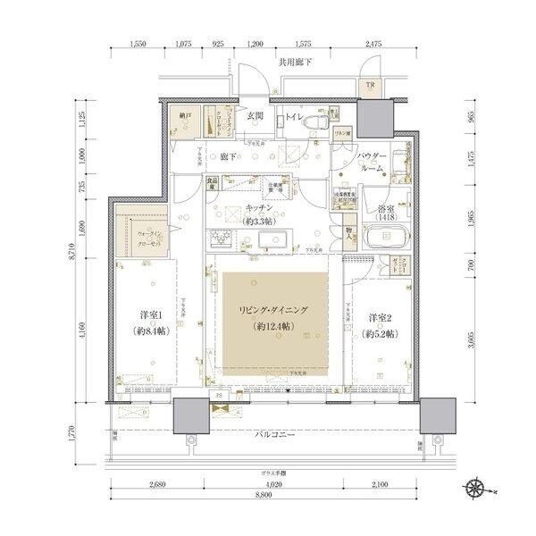 2LDK(71.53m²)└ LD12.4帖 K3.3帖 洋室8.4帖 洋室5.2帖