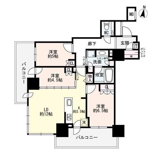 3LDK(75.2m²)└ LD12帖 K3.5帖 洋室6.5帖 洋室5帖 洋室4.5帖