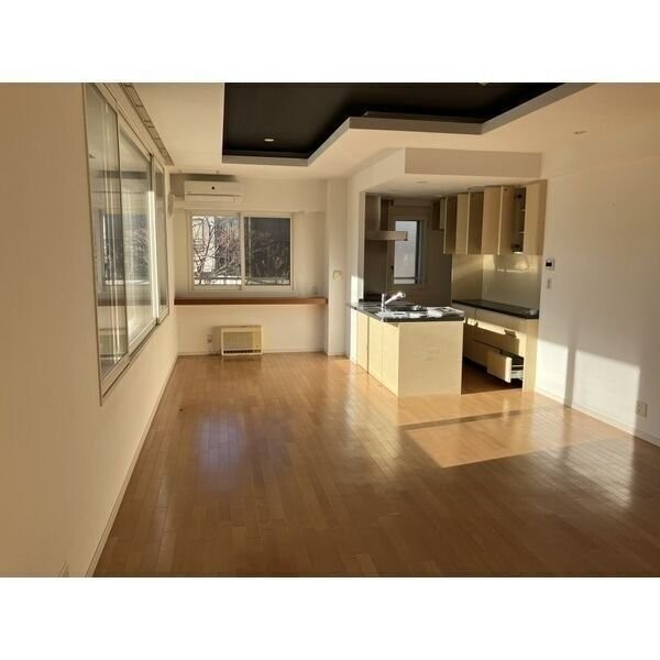 ここに注目!玄関の扉を開けた瞬間、空気がふわりと広がって、なんだか安心した気持ちになりました。桂和レジデンス円山桜のこのお部屋は、分譲仕様ならではのゆとりと落ち着きがあり、心の奥に静かに馴染んでくるような感覚がありました。間取りは3LDK、広さは102㎡以上。家族と一緒に暮らす日々が、無理なく自然に想像できる、そんな住まいです。 まず目を引いたのは、広々としたリビングダイニング。日当たりの良い南向きのバルコニーに面していて、昼下がりには光がたっぷりと入り込み、床がほんのりと温かく感じられました。ふとした時間に窓辺で本を開いたり、家族が揃う夕食時にあたたかな灯りが差し込んだり。そんな何気ない時間が、この空間ではとても豊かに思えました。 キッチンは対面式で、火を使わないIHクッキングヒーターが採用されています。料理が苦手でも、何となくやってみようかなと思わせてくれる清潔感のある空間。キッチンに立ちながら、リビングにいる家族と会話ができる配置は、まさに理想的でした。背中越しではなく、目を合わせて話せること。それだけで家の中の雰囲気はぐっと変わるものだと思います。