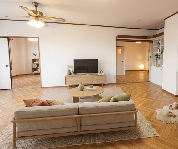ここに注目!この物件に初めて足を踏み入れたとき、正直その広さと落ち着いた雰囲気に驚きました。築年数は経っていますが、外観も内装も手入れが行き届いていて、どこか懐かしさと安心感を感じさせてくれます。4SLDKという十分すぎる間取りに加えて、1階には小さなお店やアトリエとして活用できるテナントスペースがあり、「ここなら私のやりたいことが形にできるかもしれない」と、そんな未来がすっと思い描けました。 玄関を開けて中へ進むと、広いリビングと、それぞれ独立した部屋が心地よい距離感で配置されています。家族で住むのはもちろん、一人の時間を大切にしたい人にも合っているように感じました。独立キッチンは使い勝手がよく、リビングからは見えにくい構造のため、急な来客があっても生活感を気にせずに済むのが嬉しいポイントです。キッチン横には収納も多く、調理器具や食材のストックなどをすっきり片付けられそうでした。 そして、私が特に安心したのがエアコンの設置。北海道でも夏場は気温が上がる日がありますが、しっかり冷房が効くことでペットとの生活もより快適になります。