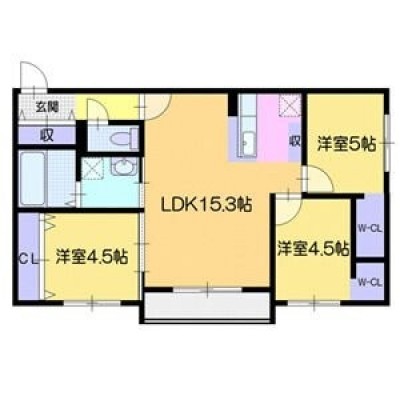 3LDK(66.03m²)└ LDK15.3帖 洋室5帖 洋室4.5帖 洋室4.5帖