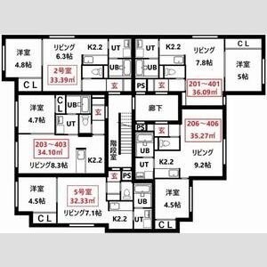 1LDK(33.39m²)└ LD6.2帖 K2.2帖 洋室4.8帖