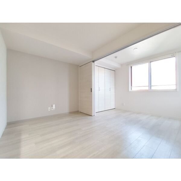 ここに注目!初めてこのお部屋に入ったとき、ふんわりとした明るさに包まれて、心がホッとする感覚がありました。9.1帖のリビングは、広すぎず狭すぎず、ひとり暮らしにはちょうどよいサイズ感。東南向きの窓から自然光がしっかりと入り、朝はカーテン越しにやさしい日差しで目が覚めるような、そんな毎日が始まりそうです。 対面キッチンは、部屋の中心に据えられたような存在感。コンロも二口あり、しっかりと自炊ができるつくりです。お気に入りの調味料を並べたり、気ままに料理をしたり、友人を招いたときにはリビングでおしゃべりしながらキッチンで支度を整えることもできそう。料理をする時間が、ただの作業ではなく、暮らしの一部として楽しめそうだと感じました。 隣接する洋室は3.5帖とコンパクトながら、収納がしっかり備えられていて、ベッドと小さなデスクを置くくらいのスペースは十分。生活空間と睡眠スペースをしっかり分けたい私にとって、このつくりは嬉しいポイントでした。ちょっとした一人の時間を持ちたいときや、読書、音楽に没頭したいときなど、自分だけの落ち着く空間として活用できそうです。