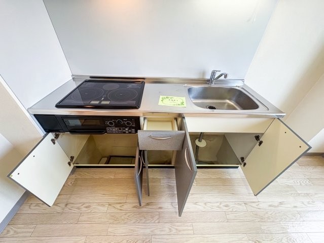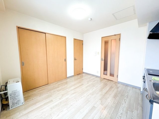 備考 駅から少し歩いてたどり着いたのは、白を基調としたシンプルな外観が印象的なアオイBLD610。静かな住宅街の一角にあり、穏やかな空気が流れていました。 玄関ドアを開けると、すっきりとした間取りの1LDK。7.7帖のリビングは思っていたより広く、家具の配置がしやすそうです。 壁付けのシステムキッチンは、3口IHコンロ付きで見た目もすっきり。キッチン周りのスペースも確保されていて、まな板をしっかり広げられる余裕があるのが嬉しいポイントでした。 バルコニーに面した洋室は3.3帖とコンパクトながら、窓から入る光のおかげで閉 学区色がついているアイコンをクリックすると、本物件までの道順を見ることができます。