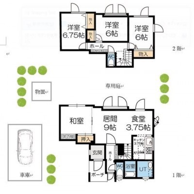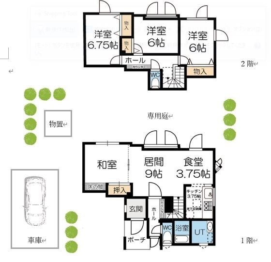 ここに注目!イニングテーブルやソファの配置もしやすく、家具のレイアウトを考える時間も楽しみのひとつになりそうです。対面式ではない独立キッチンは、調理に集中しやすく、調味料や調理器具もスッキリ収納できる仕様。 家族の食事を丁寧に作る、そんなひとときが浮かびます。2階には洋室が3つあり、子ども部屋や書斎として使い分けることも可能。8帖の和室もあり、客間としてはもちろん、お昼寝スペースとしても活躍しそうです。特に印象に残ったのは、トイレが2ヶ所に分かれていること。朝の忙しい時間帯でも家族で取り合いにならず、ストレスの少ない生活ができそうだと感じました。 また、洗面台は独立型で、収納力もあり、身支度もスムーズに行えそうです。収納スペースも豊富で、シューズボックスや押し入れ、クローゼットが随所に配置され、家族分の荷物もすっきりと整理できそう。外には専用の庭が広がっており、春から夏にかけてはガーデニングを楽しんだり、小さなテーブルを出してお茶の時間を過ごしたり。ペットの散歩帰りにそのまま庭で過ごす時間も、この家なら自然と生まれそうです。