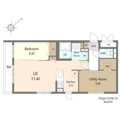 1LDK(56.1m²)└ LD11.4帖 K3.1帖 洋室5.8帖