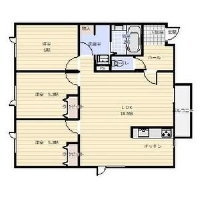 3LDK(73.97m²)└ LDK18.5帖 洋室5.3帖 洋室5.3帖 洋室6.5帖