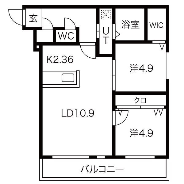 2LDK(54.04m²)└ LD10.9帖 K2.4帖 洋室4.9帖 洋室4.9帖