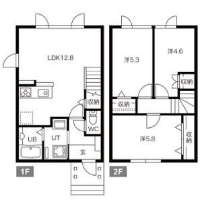 3LDK(68.57m²)└ LDK12.8帖 洋室5.8帖 和室4.6帖 洋室5.3帖