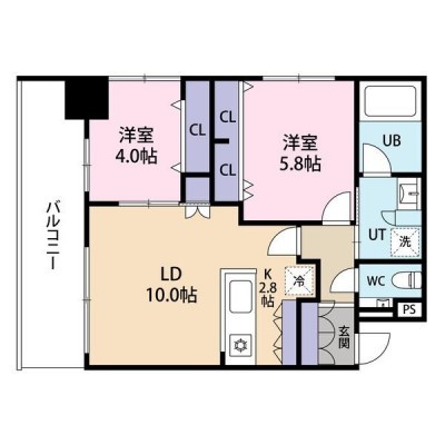 2LDK(55.16m²)└ LD10帖 洋室5.8帖 洋室4帖 K2.8帖