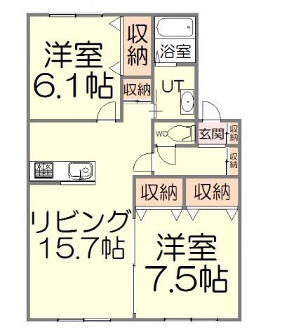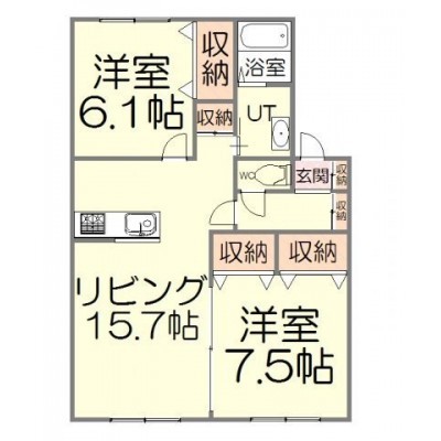 2LDK(65m²)└ LD13帖 K2.5帖 洋室7.5帖 洋室6.1帖
