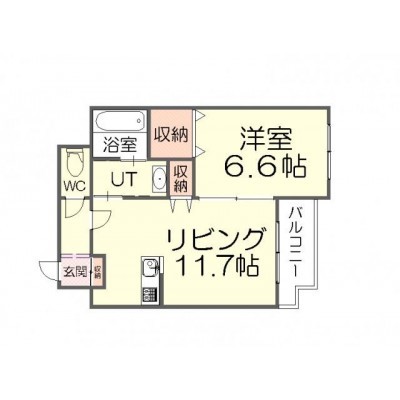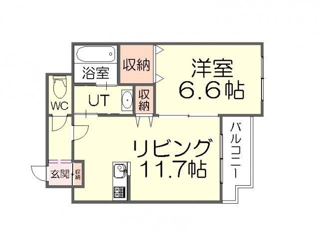 1LDK(42.8m²)└ LDK11.7帖 洋室6.6帖