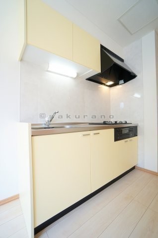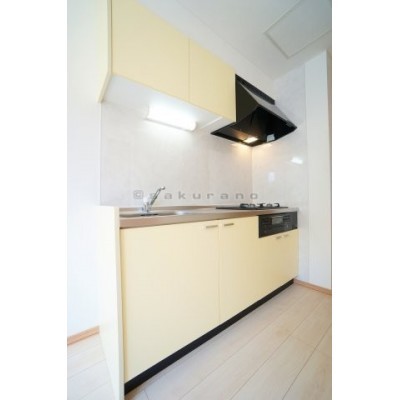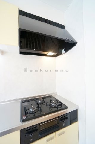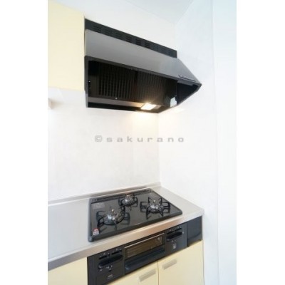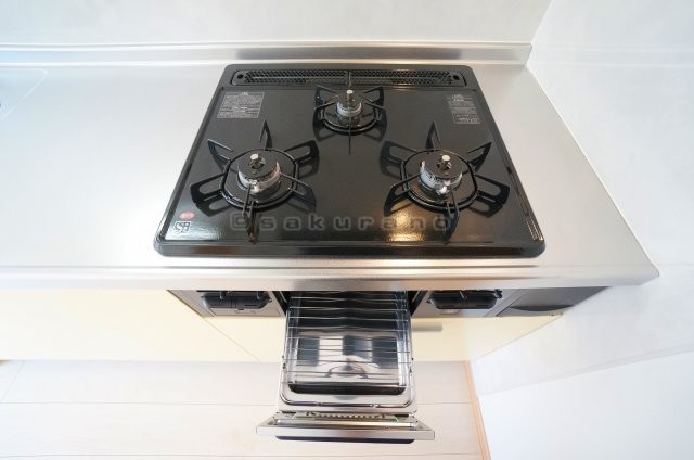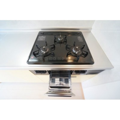 使い勝手がよいシステムキッチン。ガスコンロは3口。もちろんグ