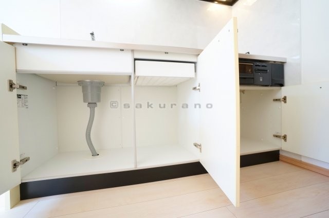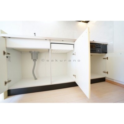 キッチンには上下に収納スペースが備えており、片付けに易く、キ