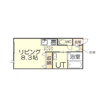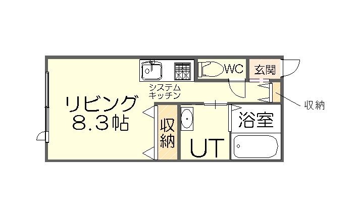 間取りはこちら。洋室8.3帖のワンルームは、使い勝手を重視した