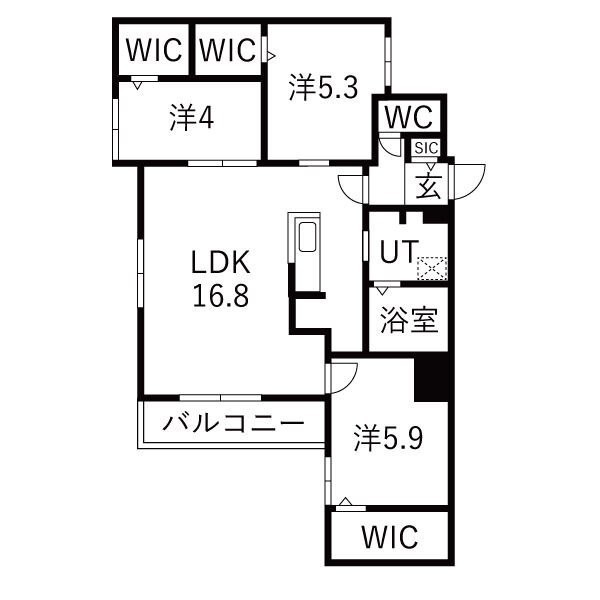 3LDK(70.4m²)└ LDK16.8帖 洋室5.6帖 洋室5.3帖 洋室4帖