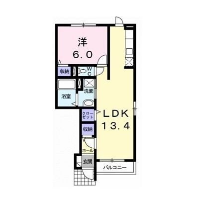 1LDK(44.28m²)└ LDK13.4帖 洋室6帖