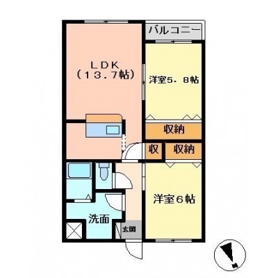 2LDK(57.19m²)└ LDK13.7帖 洋室5.8帖 洋室6帖