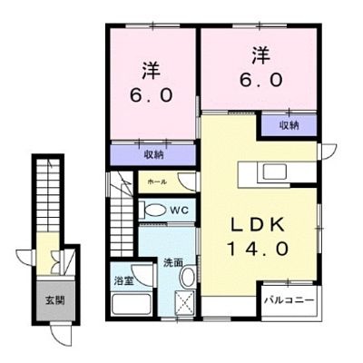2LDK(62.1m²)└ LDK14帖 洋室6帖 洋室6帖