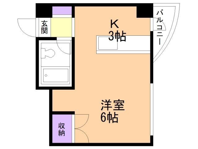 1K(19.44m²)└ K3帖 洋室6帖