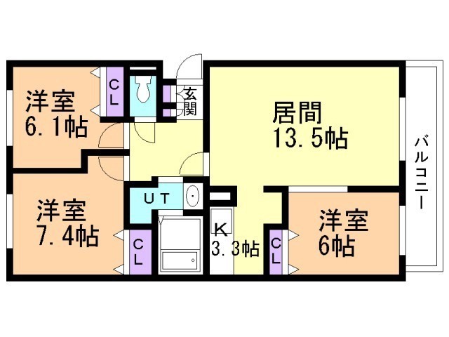 3LDK(77.02m²)└ LDK16.8帖 洋室7.4帖 洋室6.1帖 洋室6帖