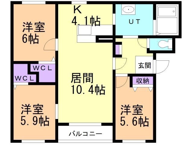3LDK(70.9m²)└ LD10.4帖 K4.1帖 洋室6帖 洋室5.9帖 洋室5.6帖