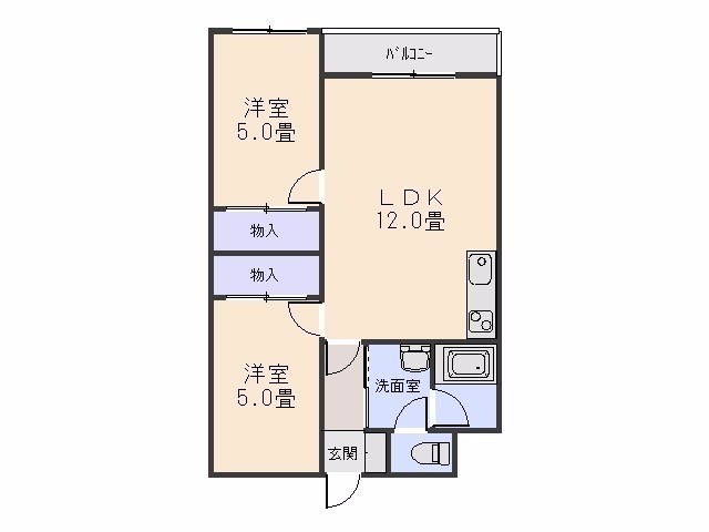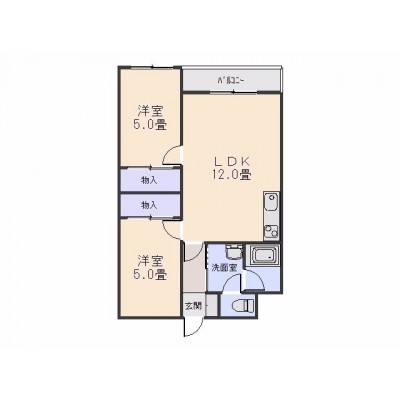 2LDK(44m²)└ LDK12帖 洋室5帖 洋室5帖
