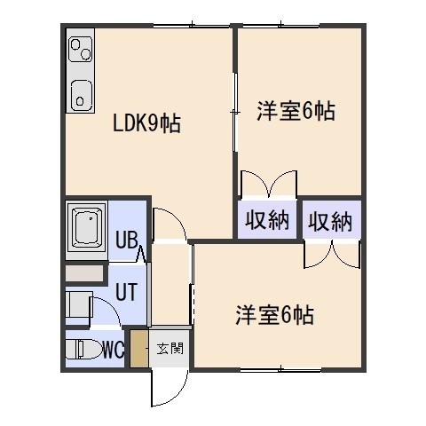 2LDK(46.28m²)└ LDK9帖 洋室6帖 洋室6帖