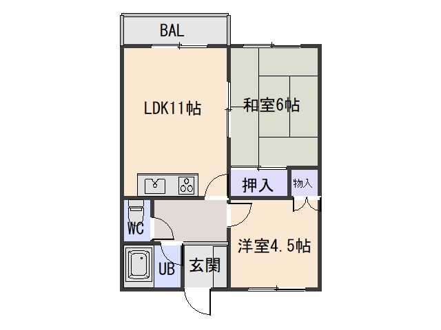 2LDK└ LDK11帖 洋室4.5帖 和室6帖