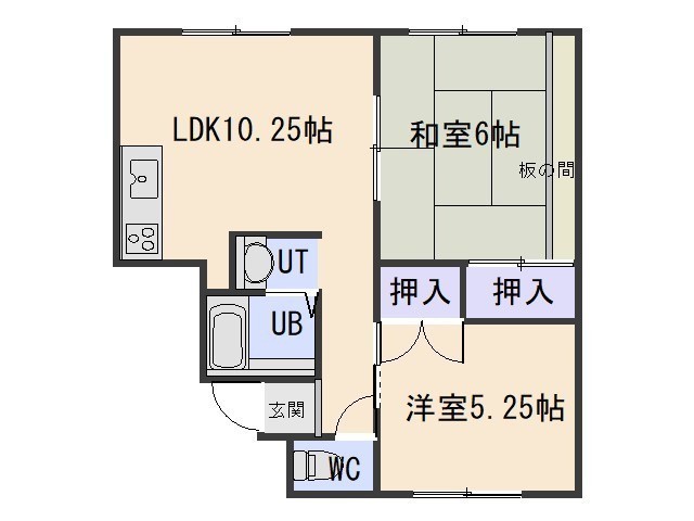 2LDK(46.5m²)└ LDK10.25帖 和室6帖 洋室5.25帖
