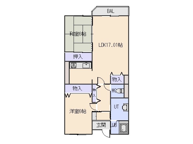 2LDK(68.82m²)└ LDK17.01帖 洋室6帖 和室6帖