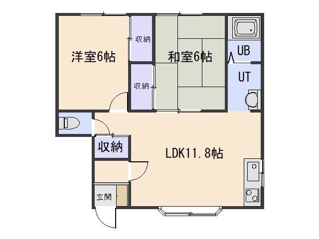 2LDK└ LDK11.8帖 洋室6帖 和室6帖